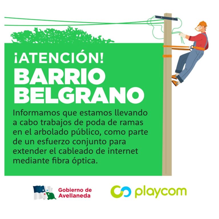 Avellaneda: realizan trabajos de poda para extender la fibra óptica ¿En qué barrio? Avellaneda Este martes 12 de marzo, una cuadrilla municipal realiza tareas de poda de ramas en el arbolado público de Barrio Belgrano.