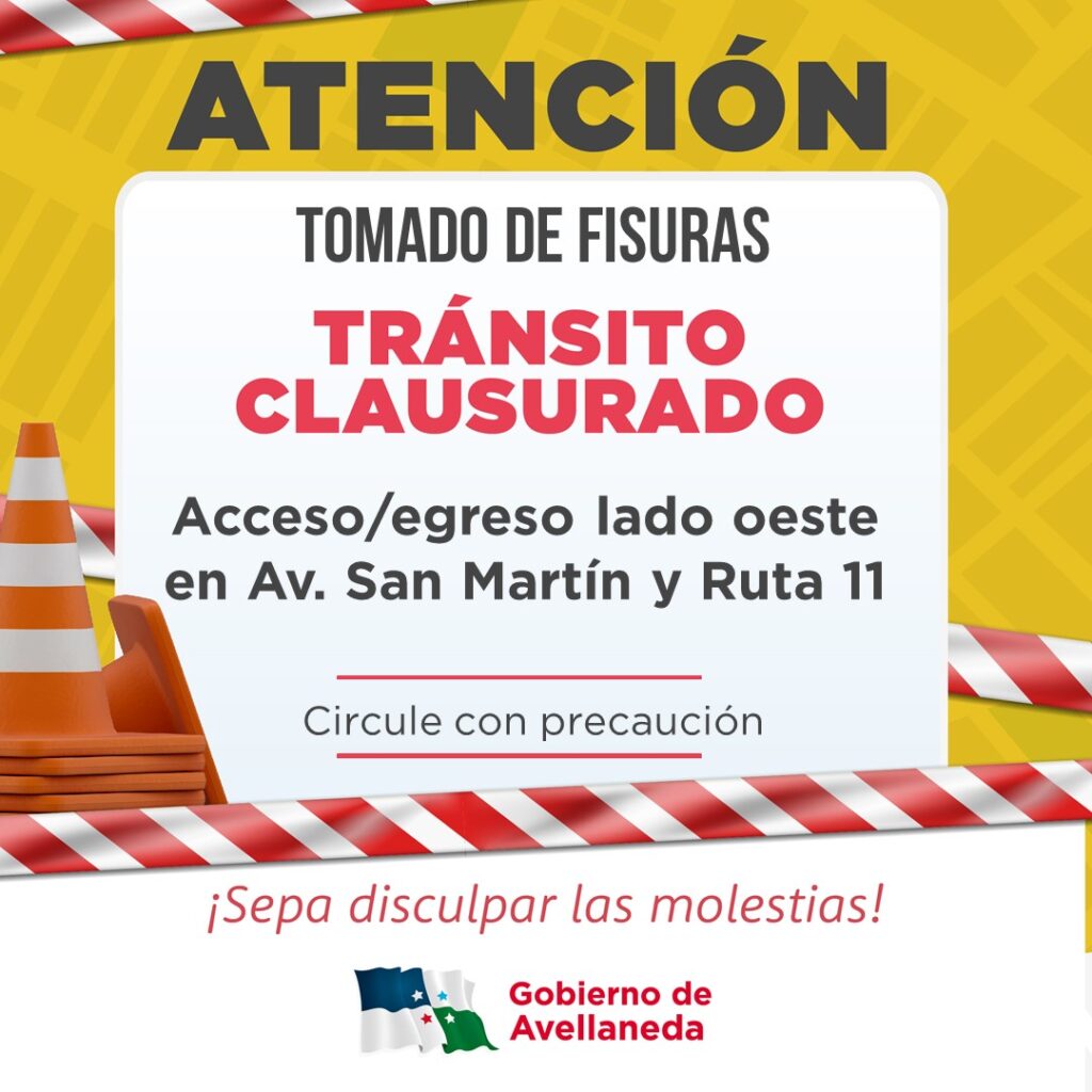 Avellaneda| Tránsito clausurado en Avenida San Martín y Ruta 11 Desde el municipio de Avellaneda informan que el acceso/egreso oeste de la ciudad se encuentra clausurado debido al tomado de fisuras en Avenida San Martín y Ruta 11. Circular con PRECAUCIÓN