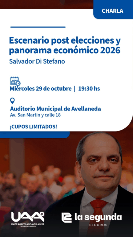 La Unión Agrícola de Avellaneda invita a participar de la charla “Escenario post elecciones y panorama económico 2026”, a cargo del reconocido analista económico Salvador Di Stefano.
