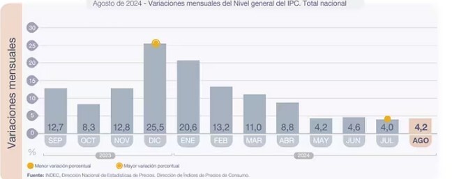 El INDEC publicó este miércoles 11 de septiembre el Índice de Precios al Consumidor (IPC) correspondiente a agosto, que registró un incremento mensual de 4,2%.