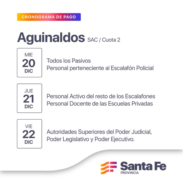 El gobierno provincial dio a conocer el cronograma de pago del aguinaldo. Comenzará este miércoles 20 de diciembre.