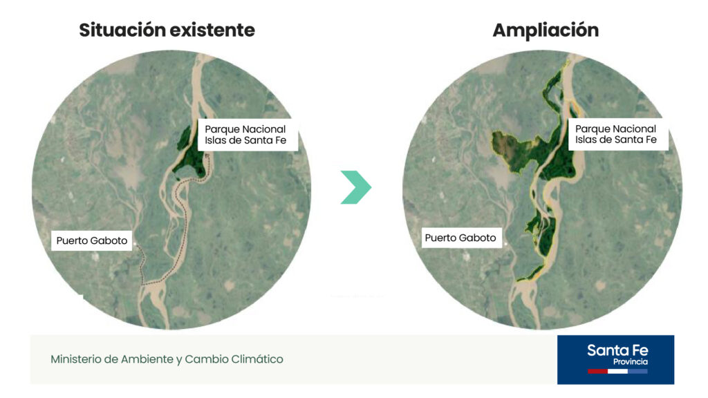 La funcionaria explicó que este “es el único parque nacional con el que cuenta nuestra provincia, que estaba muy lejos del continente y la propuesta logra ampliarlo y acercarlo; desde que estamos en la gestión hemos logrado que Parques Nacionales se instale en Puerto Gaboto, e incorpore guardaparques y brigadistas”, y agregó que “nosotros propusimos la ampliación de ese parque a más de 10.000 hectáreas, fue lo que llevamos a la Legislatura, y hoy se concretó la promulgación de esta ley, que ahora tiene que ir al Congreso de la Nación para que avale y acepte la cesión de esas tierras por parte de la provincia” señaló la ministra Gonnet.