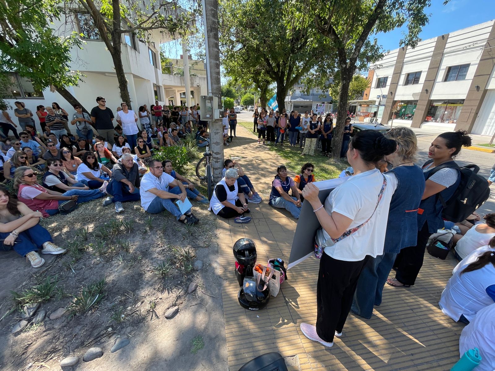 La medida se llevó adelante desde las 10 de la mañana hasta casi las 12 del mediodía, bajo la modalidad de sentada y con la consigna “¡Docentes Unidos!”. La actividad se desarrolló de manera simultánea a la marcha provincial que tuvo lugar en la ciudad de Santa Fe, marcando así el inicio del ciclo lectivo en un contexto de huelga nacional.