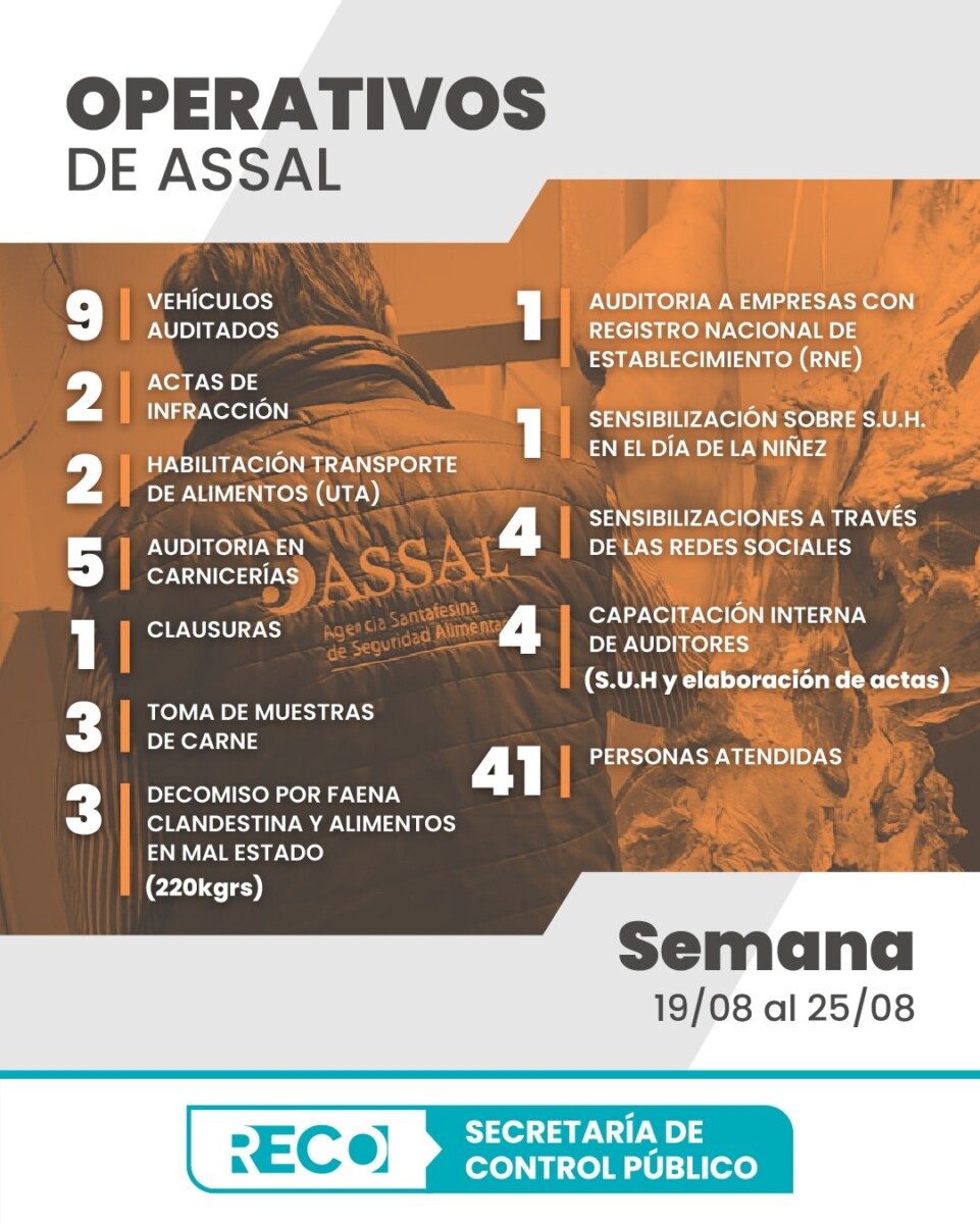 La Secretaría de Control Público, junto con la Agencia Santafesina de Seguridad Alimentaria (ASSAL) de Reconquista, intensificó las inspecciones en comercios locales durante la semana del 19 al 25 de agosto. Estos controles tienen como objetivo asegurar la calidad y seguridad de los alimentos que llegan a la mesa de los ciudadanos.