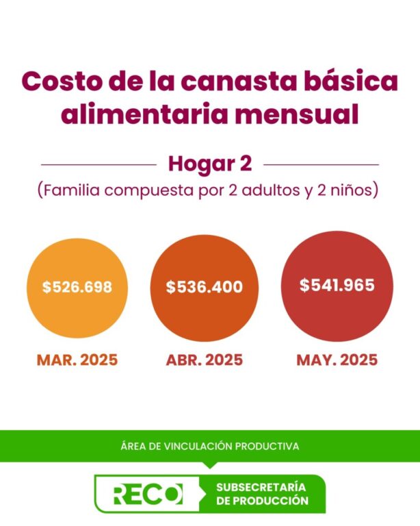 De esta manera y, por ejemplo, una familia tipo (con dos adultos y dos niños) necesitó en mayo de 2025 de $541.965 para cubrir la canasta básica de alimentos.