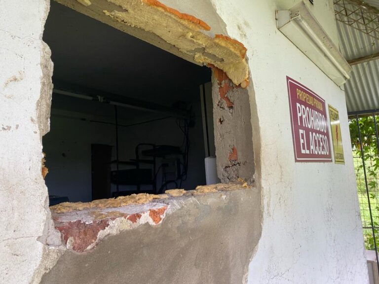 Los malvivientes para ingresar a la planta debieron romper un portón de entrada, más otro cercado antes de llegar al edificio, más luego romper parte del edificio para llevarse el aire acondicionado y el grupo electrógeno que es lo más caro que se llevaron.