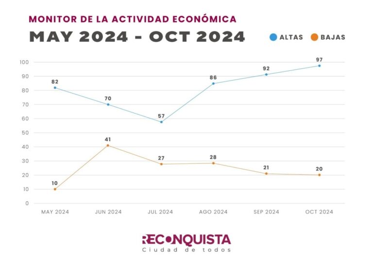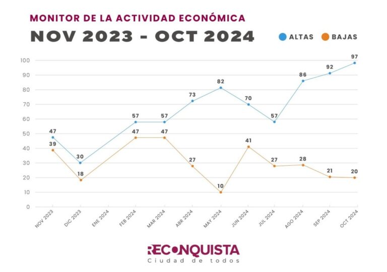 La Oficina de Estadísticas y Censos de la Municipalidad de Reconquista informó que en octubre de 2024 se registraron 97 nuevas habilitaciones comerciales frente a 20 bajas, consolidando un récord por tercer mes consecutivo en la apertura de empresas.