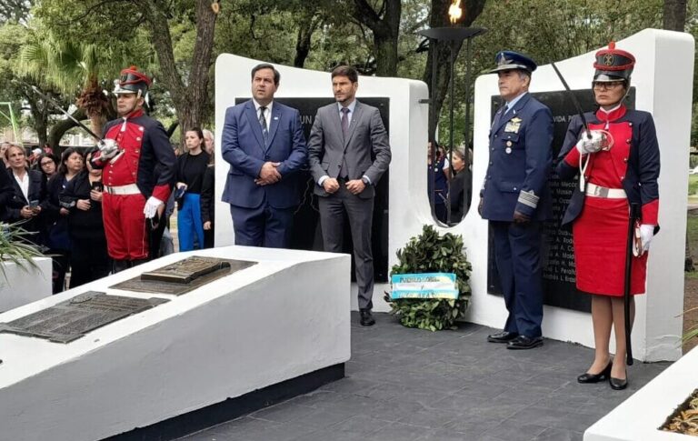 Juntos realizaron unas ofrendas al pie del monumento allí ubicado, así como también hicieron lo propio el presidente del Centro de Ex Combatientes de Malvinas del Departamento General Obligado, Cesar Reniero; el presidente de la Federación Santafesina de Veteranos de Malvinas, Rubén Rada; el presidente de la Agrupación de Veteranos de Guerra, Roque Márquez; y la jefa de la Agencia PAMI Reconquista, Malvina Sumanski.