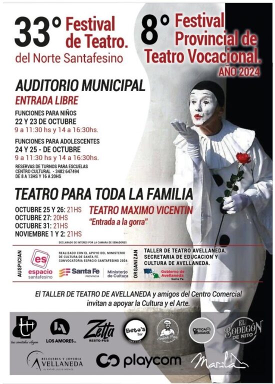 El 33° Festival de Teatro del Norte Santafesino inició el 22 de octubre en el Auditorio Municipal de Avellaneda con funciones infantiles y se prolongará hasta el 2 de noviembre, ofreciendo espectáculos para toda la familia.