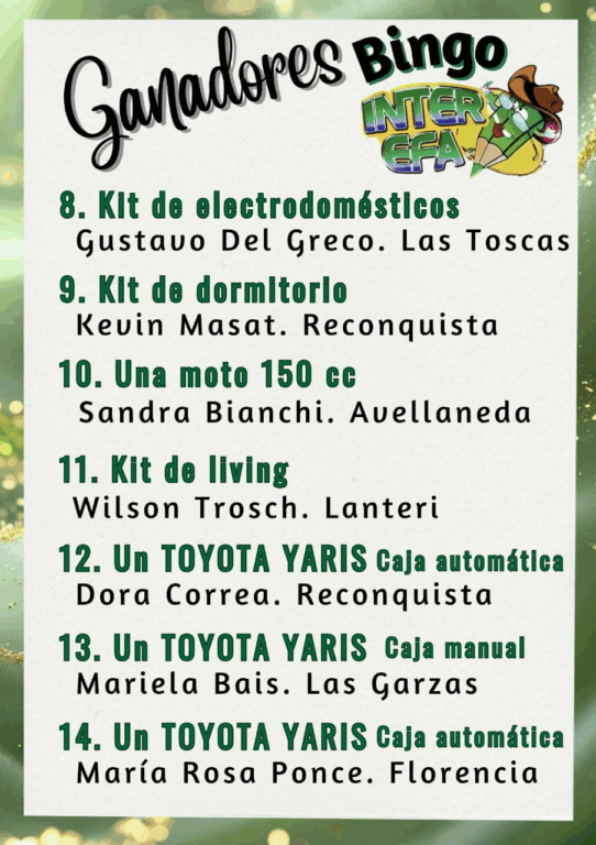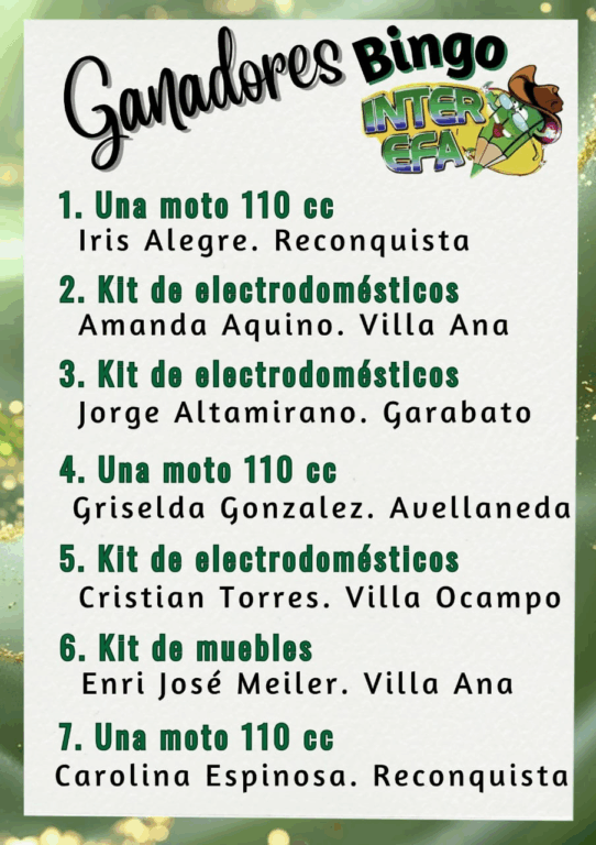 “El Bingo Inter EFA no solo entrega premios, sino que fortalece la educación y el arraigo rural”, expresaron los organizadores al cierre de la jornada.