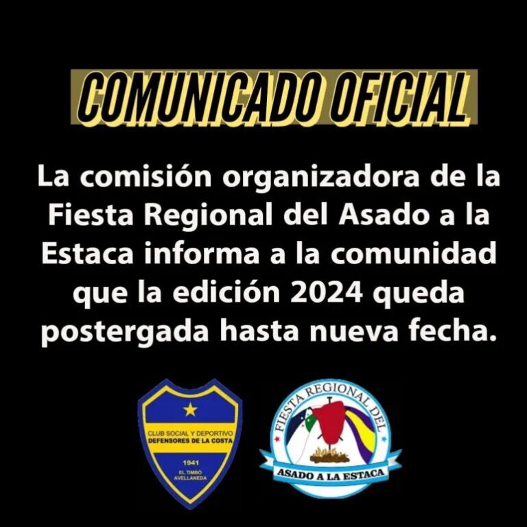 La comisión organizadora de la Fiesta Regional del Asado a la Estaca informa a la comunidad que la edición 2024 ha sido POSTERGADA hasta nueva fecha.