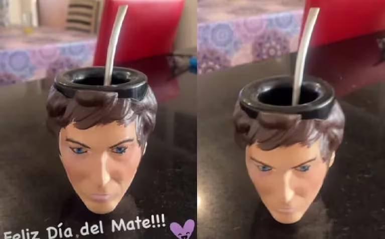 A través de sus historias de Instagram, la actriz publicó un video con la pieza en cuestión y les deseó a sus seguidores que tengan un feliz día. Se trata de una figura plástica con la cara del presidente electo. Aunque la capocómica no compartió el lugar en donde lo adquirió, en las plataformas de compra y venta online un mate con características similares cuesta entre $3500 y $8000.