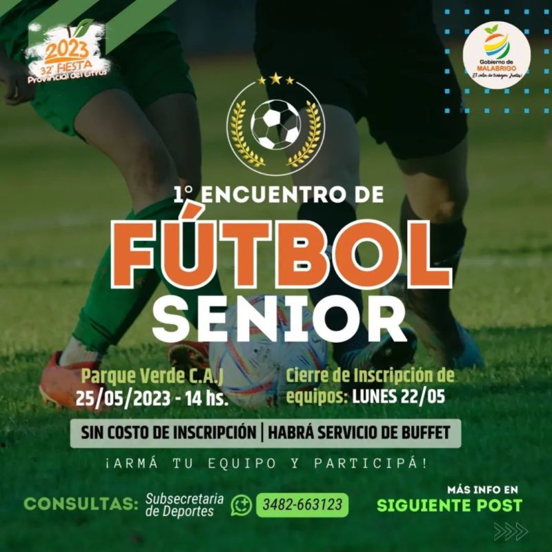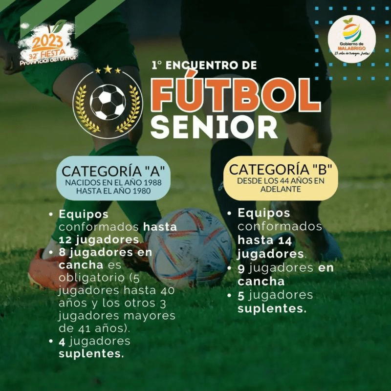Este primer encuentro de Fútbol Senior es para jugadores locales que estarán divididos en dos categorías. Es sin costo de inscripción y la misma puede realizarse hasta el día lunes 22 de mayo.