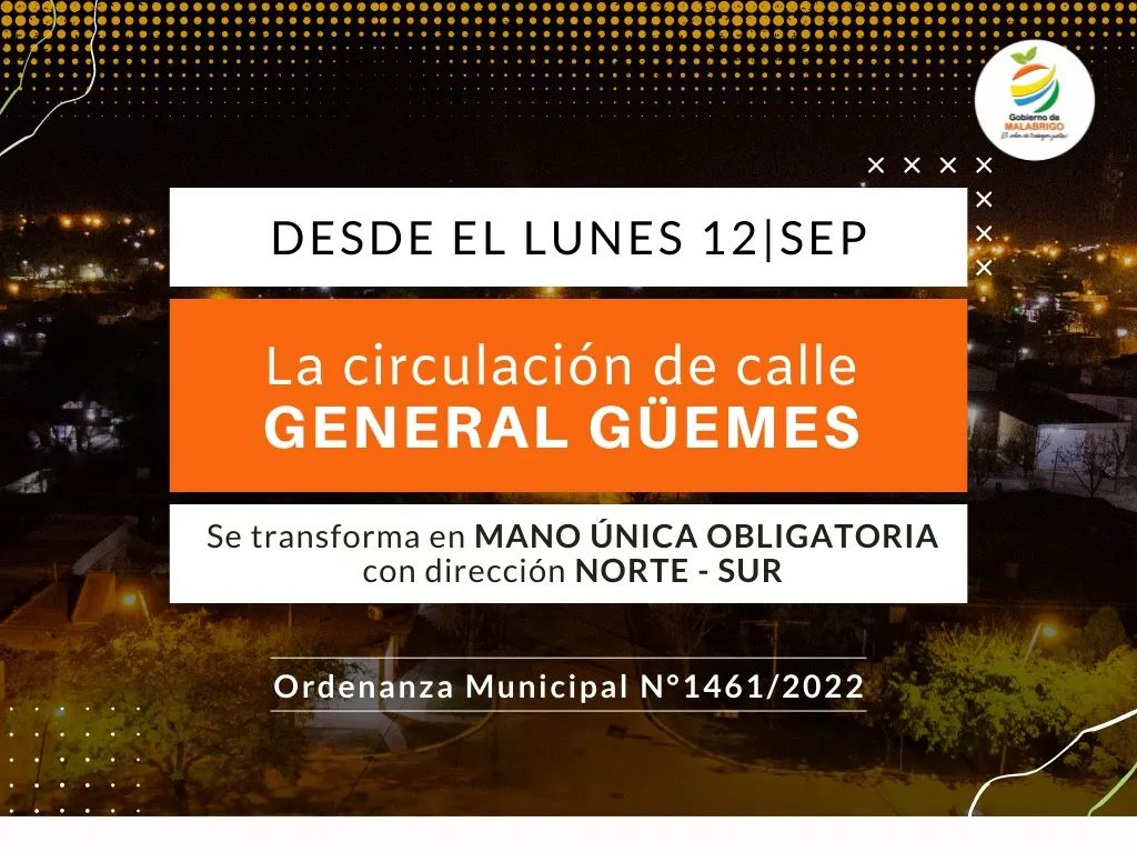Tránsito| Calle GÜEMES pasará a ser mano única en Malabrigo